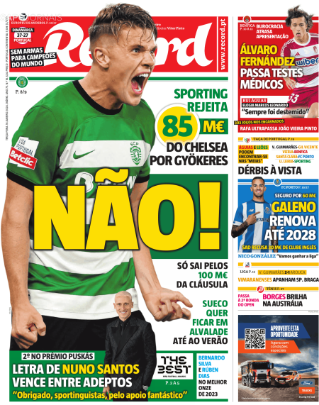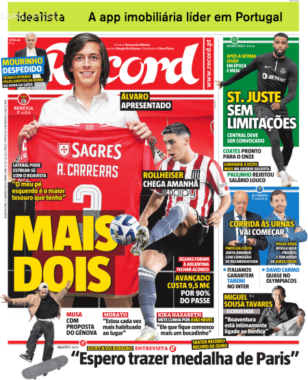 A partir de agora iras receber todos os dias as capas dos jornais desportivos portugueses