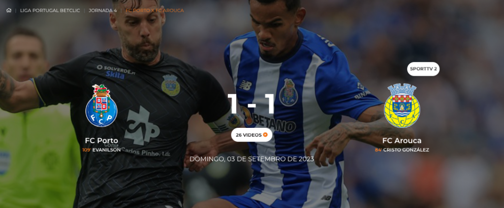 [the_ad_placement id="inside-posts"] ☑ RESUMOI Liga (#4) | FC Porto 1-1 FC Arouca#LigaPortugalBetclic #FCPFCA https://t.co/CbCcfAa35L pic.twitter.com/V5ut4ytTad— VSPORTS (@vsports_pt) September 3, 2023