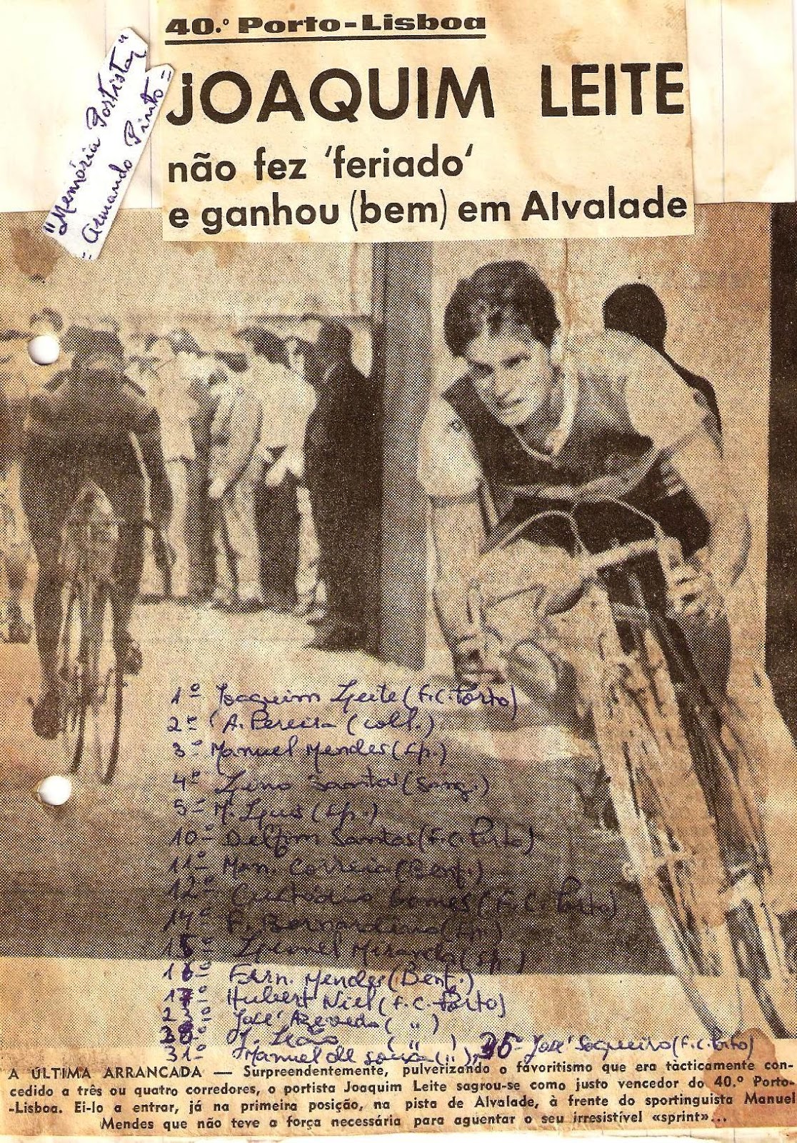 Quando há fartura a abundância até parece fazer que coisas boas não sejam tão apreciadas; mas quando abunda escassez, à míngua do desejado, dá-se mais valor a tudo e mais alguma coisa. Quão acontece no desporto, por exemplo, diante de tempos abundantes ou escassos de vitórias. Como acontecia no ciclismo portista, ao correr do 10 de junho de 1970, à chegada da clássica Porto-Lisboa, a então existente corrida mais antiga do calendário do ciclismo português. Tendo aí o ciclista Joaquim Leite conquistado a grande vitória do ciclismo portista desses tempos e também o seu grandioso triunfo, correndo então com a camisola do FC Porto. Sendo essa vitória tão entusiasmante que mereceu lugar de destaque na 1ª página do jornal O Porto, em seu número de publicação seguinte.