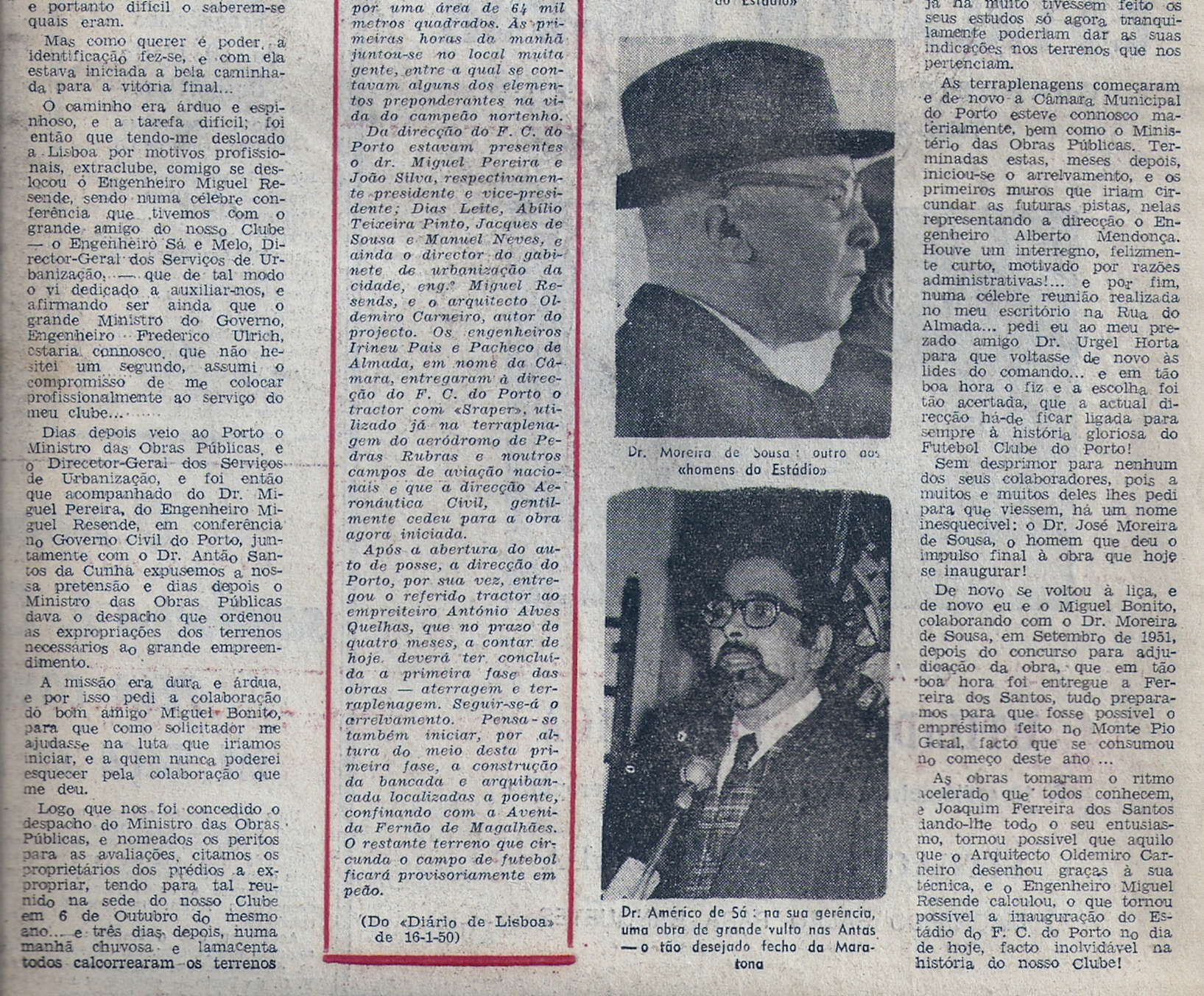 À época era presidente do FC Porto o Dr. Urgel Horta, mas grandes impulsionadores da concretização do Estádio do FC Porto haviam sido também outros grandes homens da vida do FC Porto como o sr. Sebastião Ferreira Mendes, o Dr. Cesário Bonito, o Dr. Moreira de Sousa, o Dr. Miguel Pereira, o sr. Afonso Pinto de Magalhães, entre muitos outros.