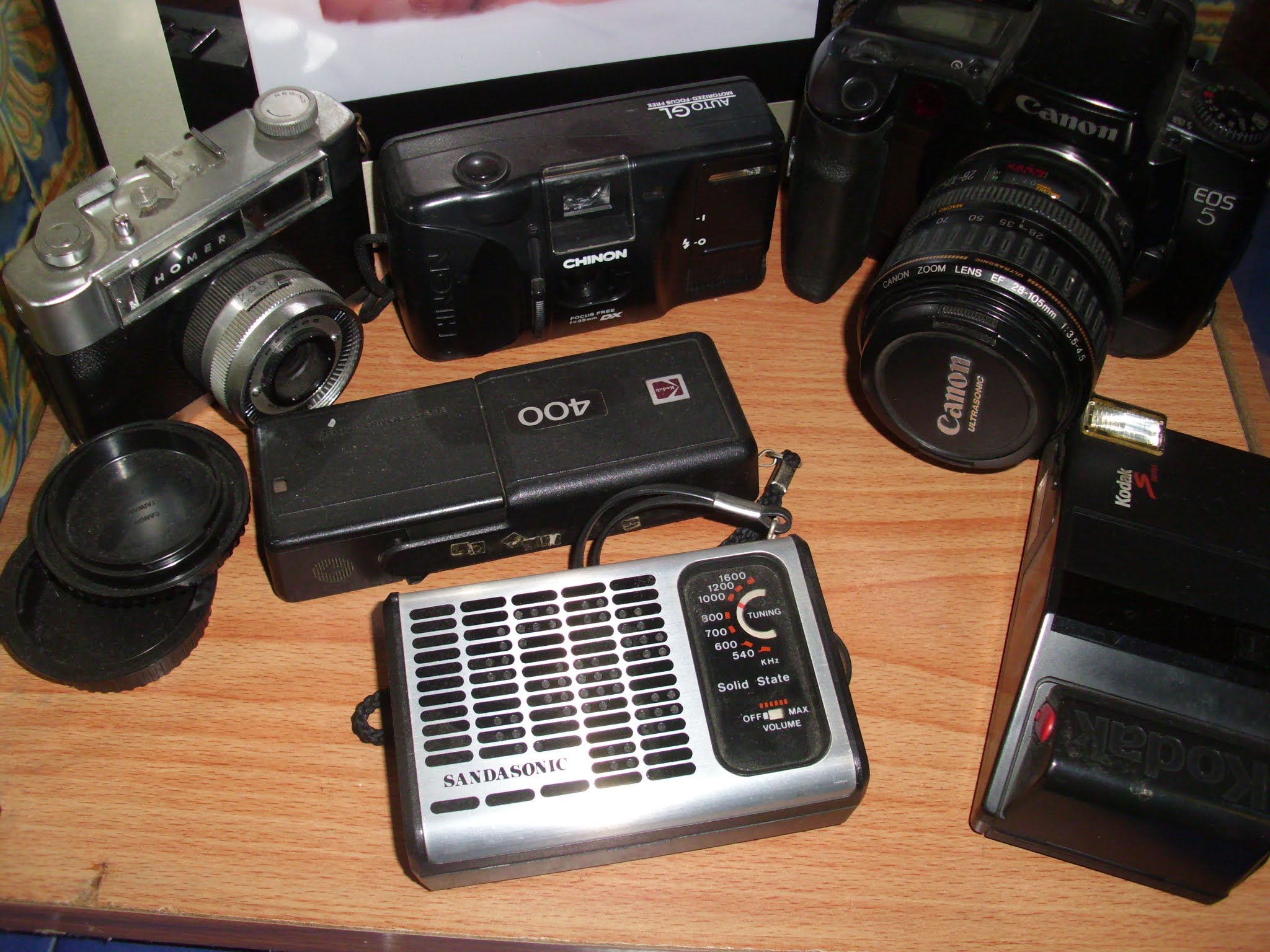E mesmo quanto a isto também não só. Pois, como guardo ainda o rádio transístor com que ouvia os relatos do Porto, quer em casa ou onde estivesse, mas também nas Antas para melhor acompanhamento de tudo, até aos anos 70/80, junto imagem desse pequeno aparelho radiofónico, já sem capa como tinha em couro escuro, entretanto estragada com o uso… Rádio esse que está junto com uma pequenina coleção de máquinas fotográficas usadas por mim em tempos passados, inclusive em fotos feitas no ambiente das Antas.