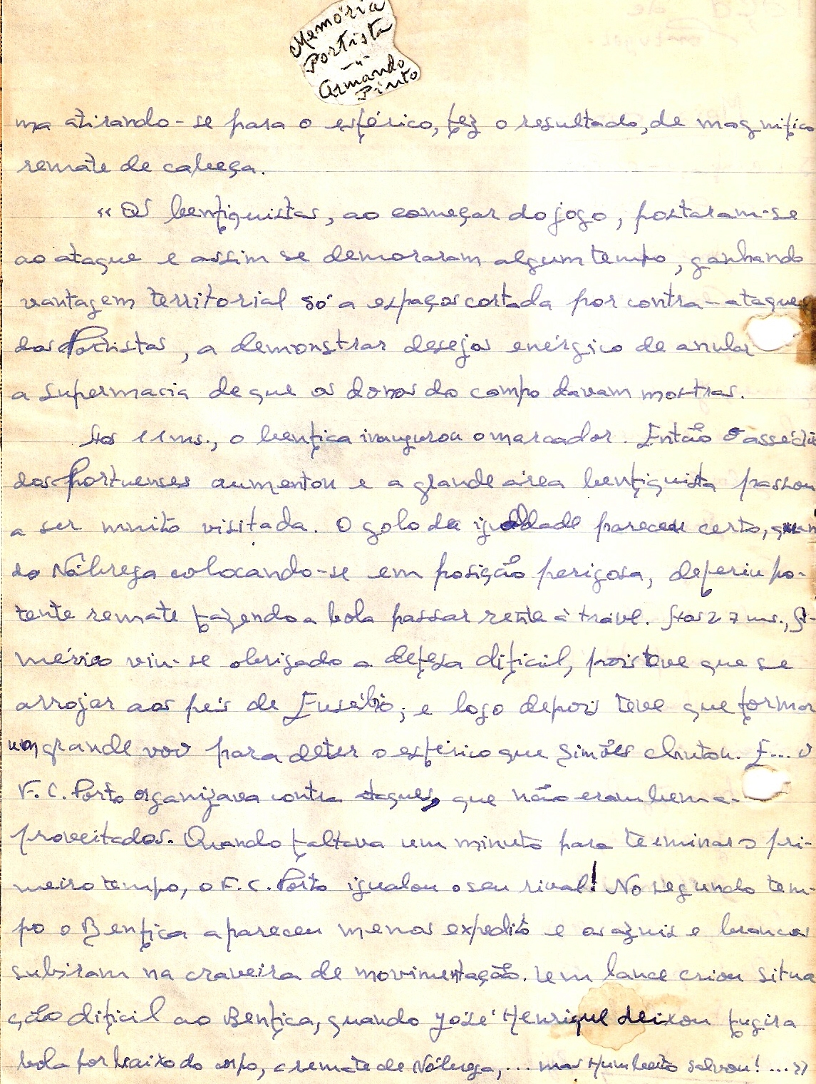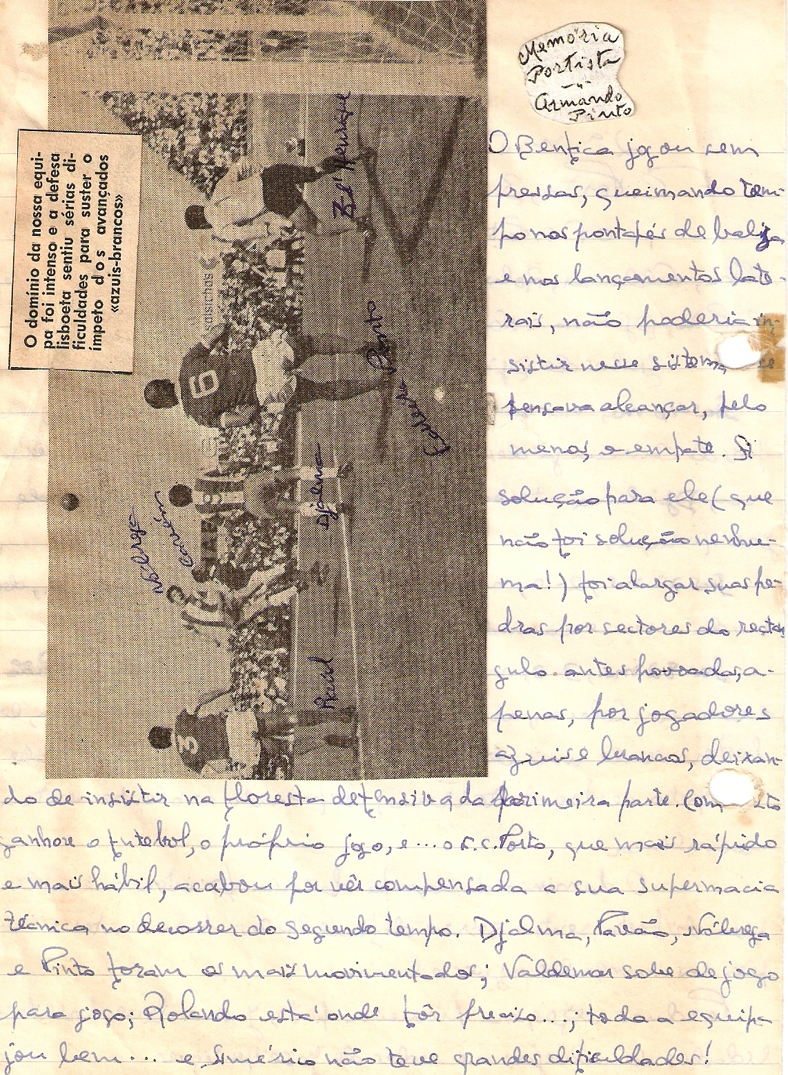 Tudo isso ficou gravado na memória portista, como ficou registado quer na retina memorial, como nas recordações pessoais mais ternas e ainda nos apontamentos particulares do portista jovem desse tempo (então com cerca de 13 anos…) e que hoje recorda isto. Como para aqui se transporta de folhas anotadas manualmente, nessa idílica fase do portismo que percorre certa veia de historiador por carolismo, no entusiasmo de que tudo o que seja de património histórico do FC Porto é valorizável para quem gosta que o FC Porto tenha vencido e vença sempre o mais possível.