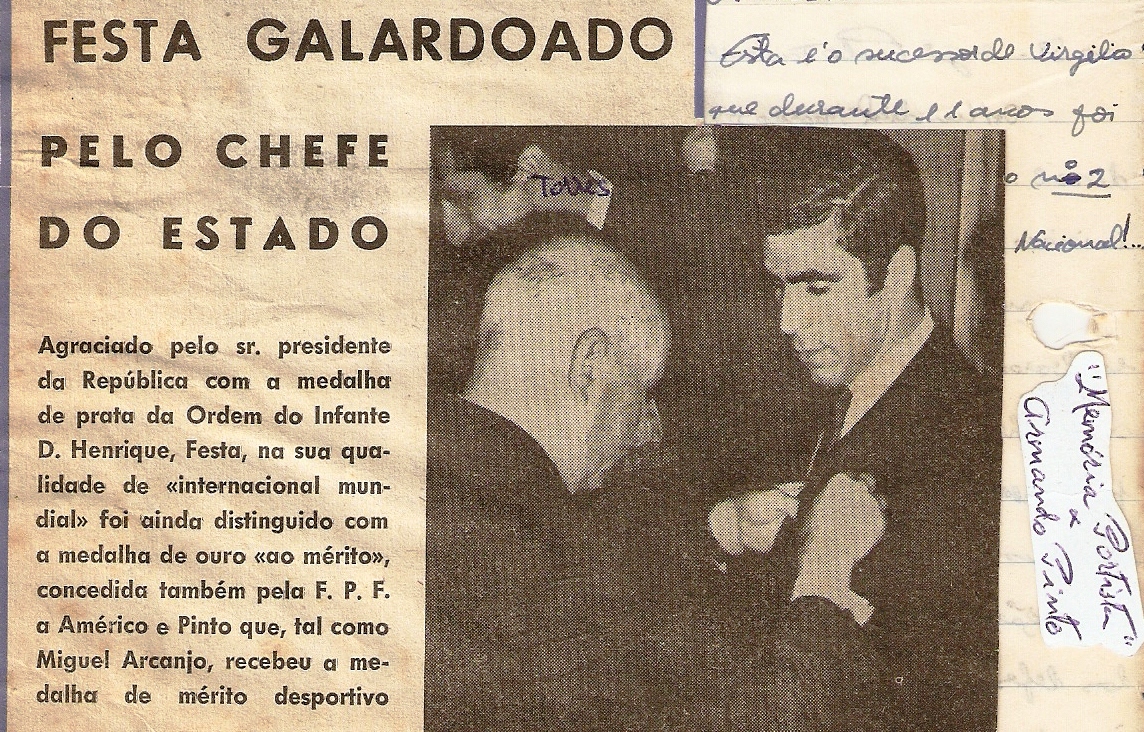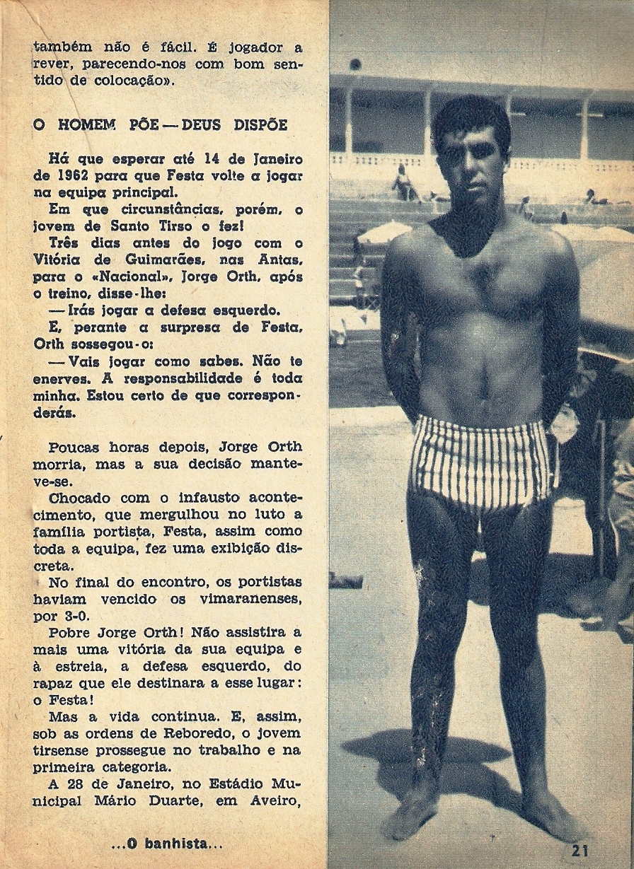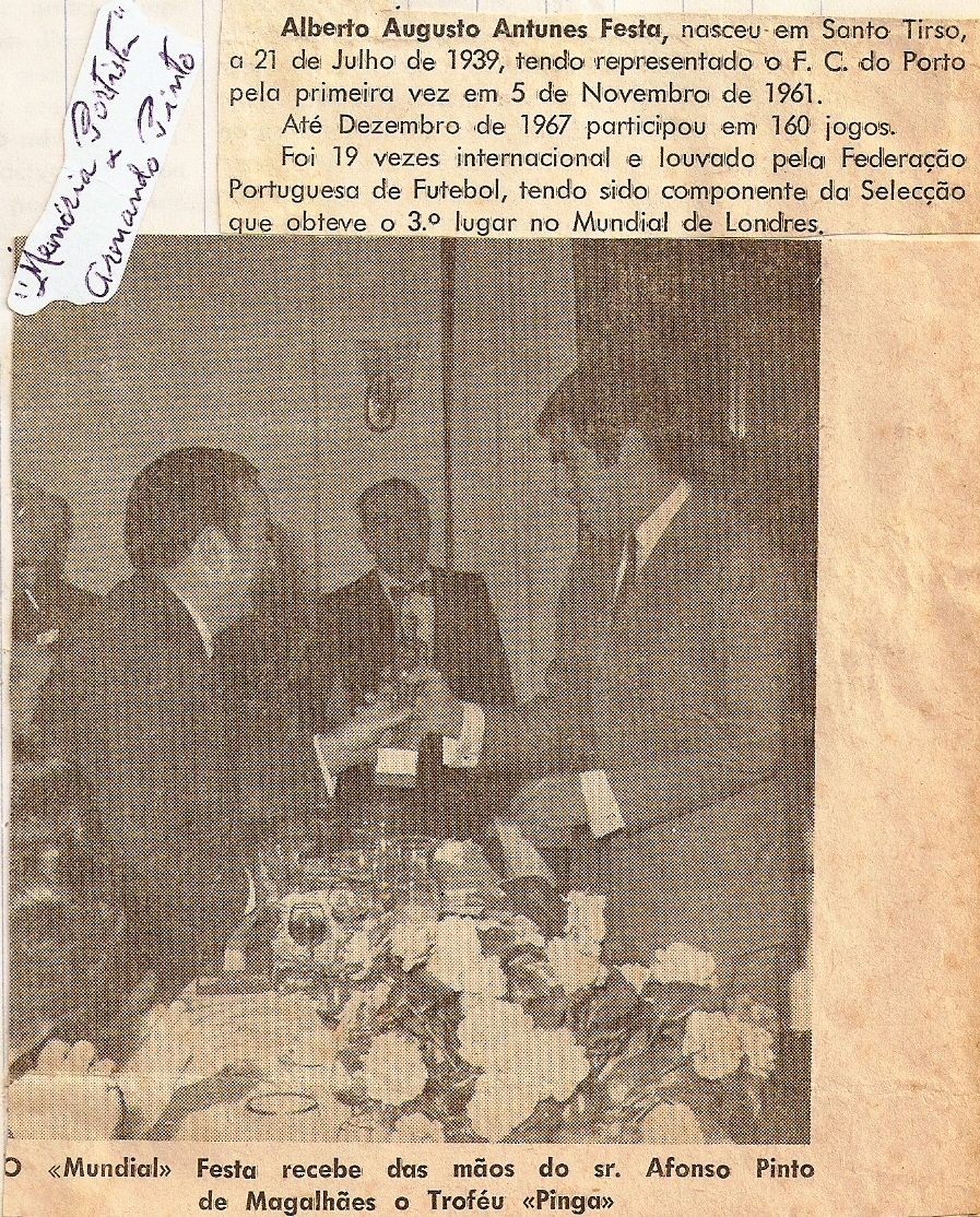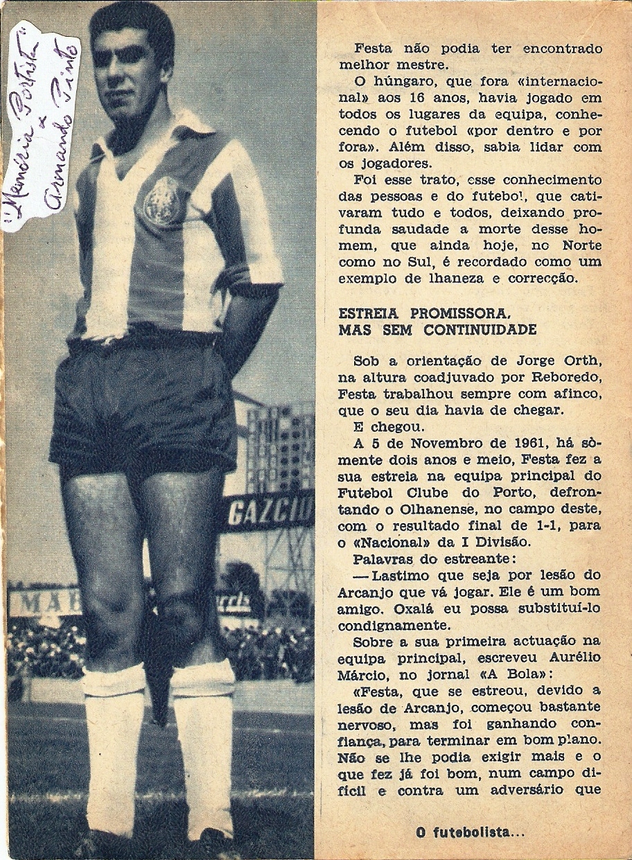 Por esse tempo de inícios da carreira no FC Porto, o jornal O Porto, então órgão oficial do clube, dedicou a Festa uma apresentação com uma coluna expressiva, publicada na respetiva edição de 25 de abril de 1962.