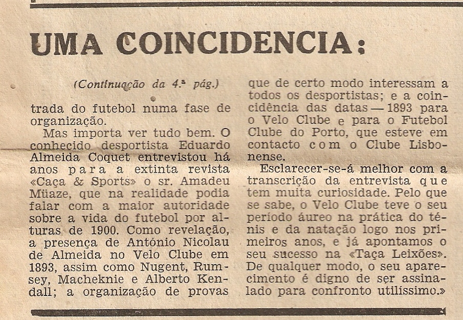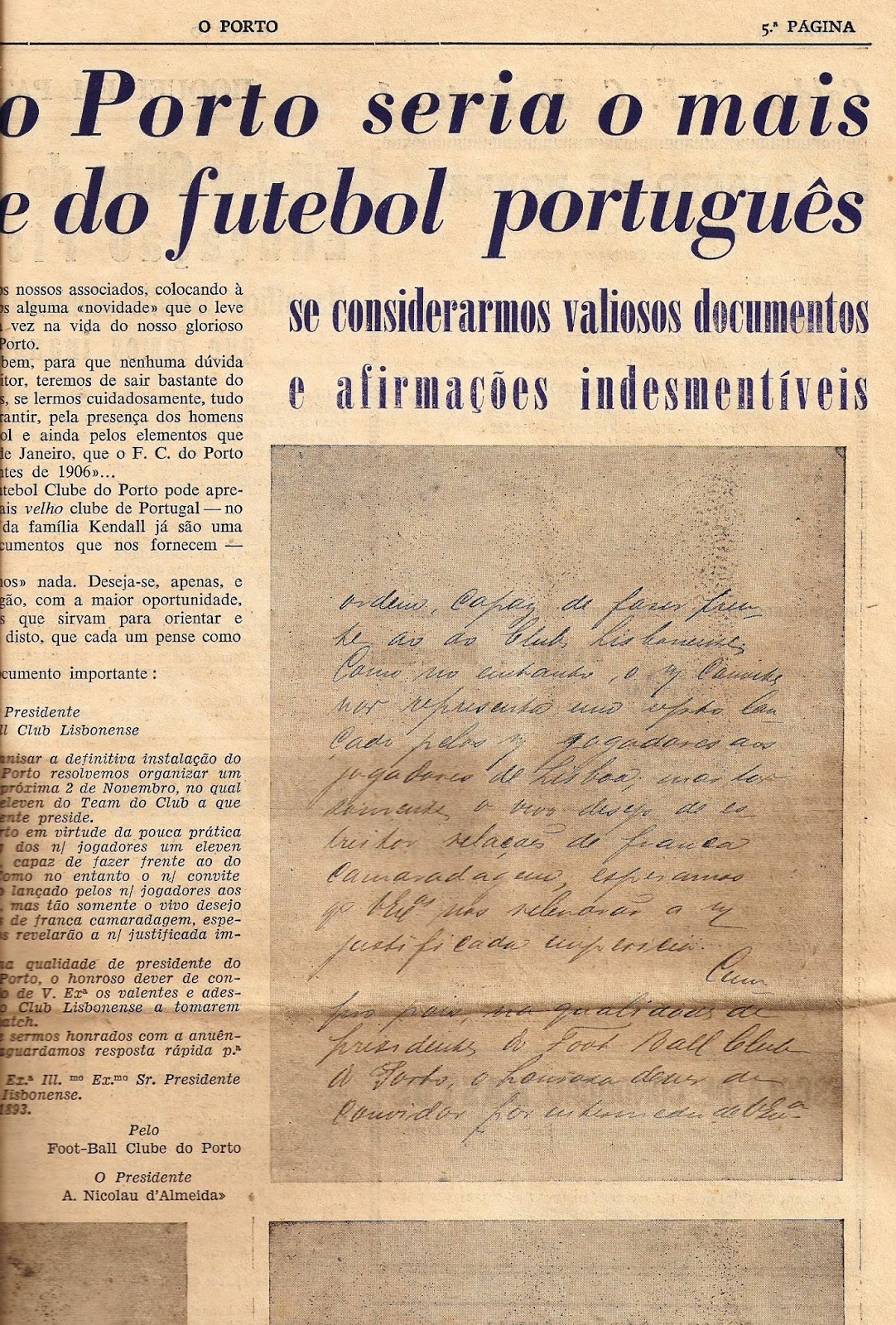 Assim, decorrido bom tempo, saíram no jornal do clube uns quantos artigos bem escritos a narrar o que aparecera, assim. Entendendo-se que deve ter havido muita celeuma de prós e contras analisados e discutidos, para ter demorado ainda esse tempo todo até o tema ter sido levado à publicação no jornal O Porto, em Novembro seguinte. Passado já quase meio ano. O que, por outro lado, até nem terá sido demasiado, para os anos que antes e depois levou ao conhecimento efetivo e ao reconhecimento público e oficial.