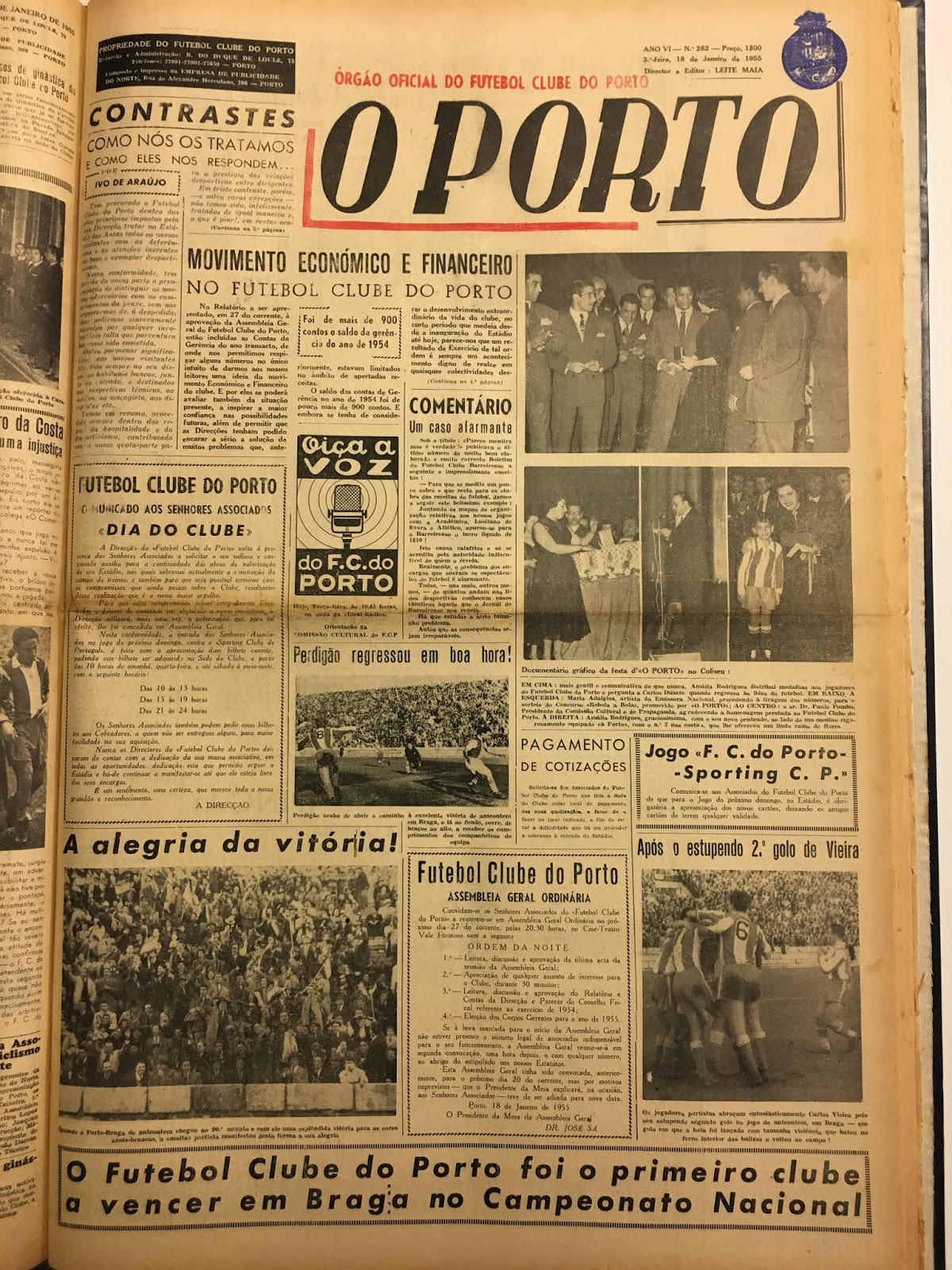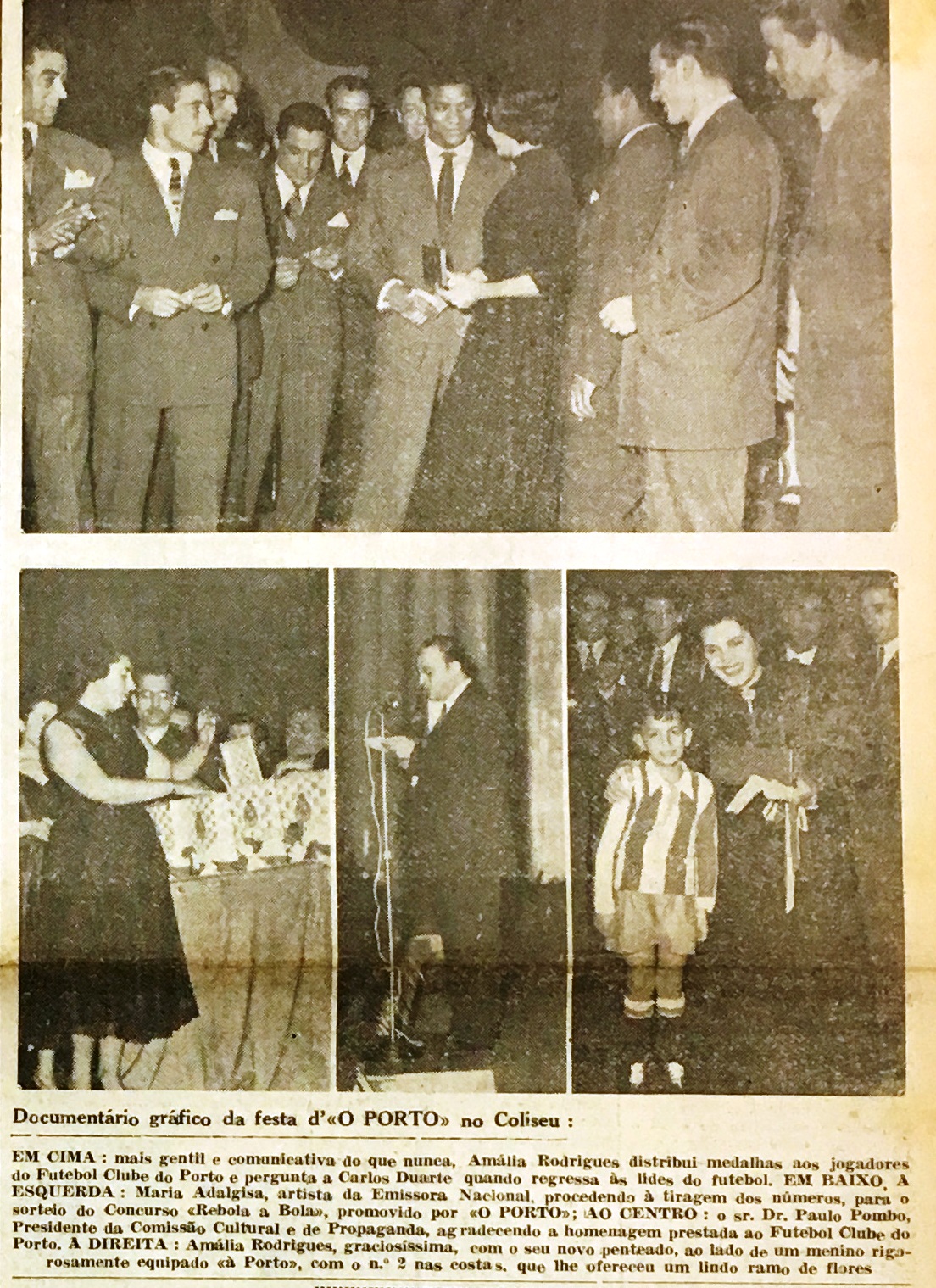 Como testemunho da colaboração de Amália Rodrigues com o FC Porto, tendo mais tarde participado na Festa do jornal O Porto, no Coliseu, atente-se no que foi publicado a propósito no próprio jornal O Porto em Janeiro de 1955 (ficando patente ser seguidora da vida do clube, inclusive interessando-se em saber quando um dos seus ídolos, Carlos Duarte, lesionado há algum tempo e a fazer falta à equipa, voltaria então a jogar…):