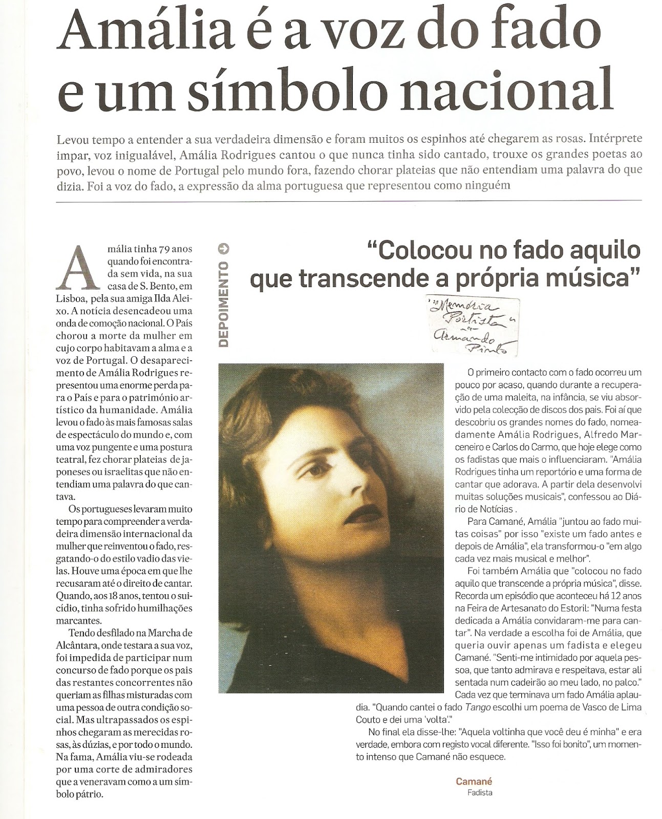 Como tal, em sua dimensão planetária no mundo das artes sonoras e imagem marcante na representatividade portuguesa a partir do século XX, tem maior ênfase quando se celebram 100 anos do nascimento. E continuará certamente pelos tempos adiante. Havendo particularidades especiais, como a que colhe as flores do ramo evocativo que aqui se lhe dedica.